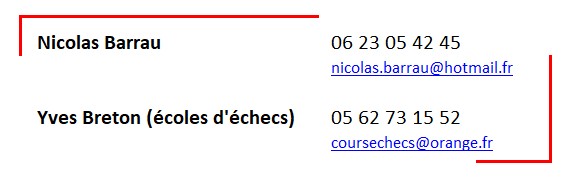 • une école d’échecs pour les jeunes de 7 à 16 ans, les cours sont assurés par Yves Breton ;