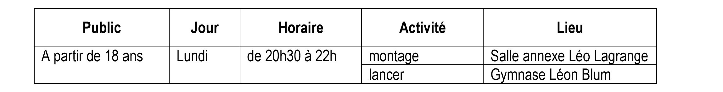 • les lancers dans un gymnase ou sur le lac du Perget,