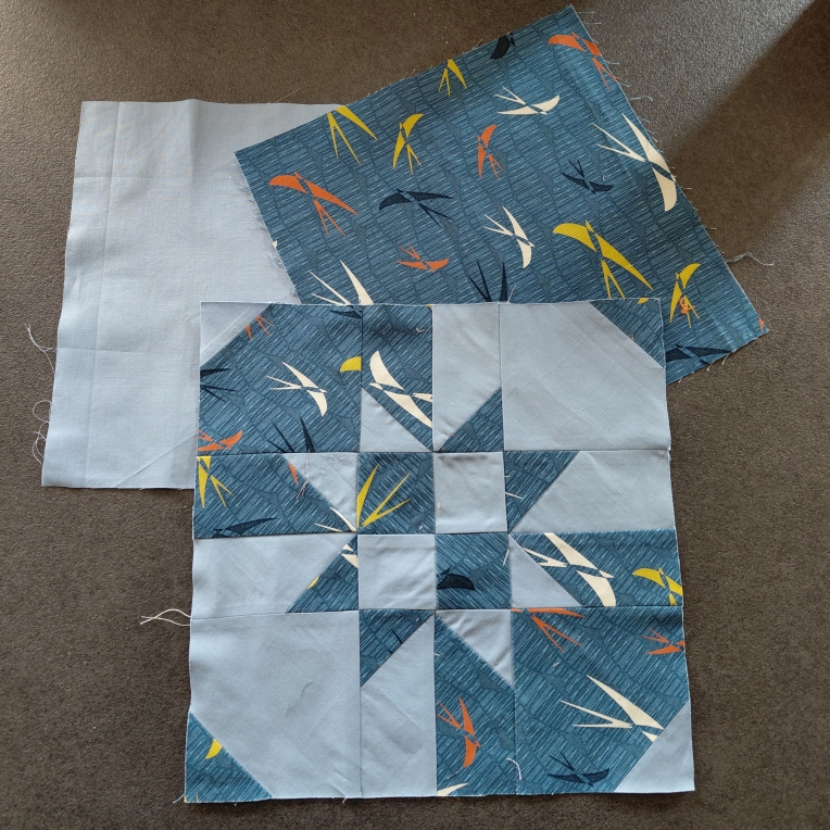 Pour cette séance du mois de mars nous vous proposons une manière de faire très ludique et de réaliser à partir de deux carrés de tissus et par un jeu de coutures droites et de coupes simples, un bloc du plus bel effet (photo).