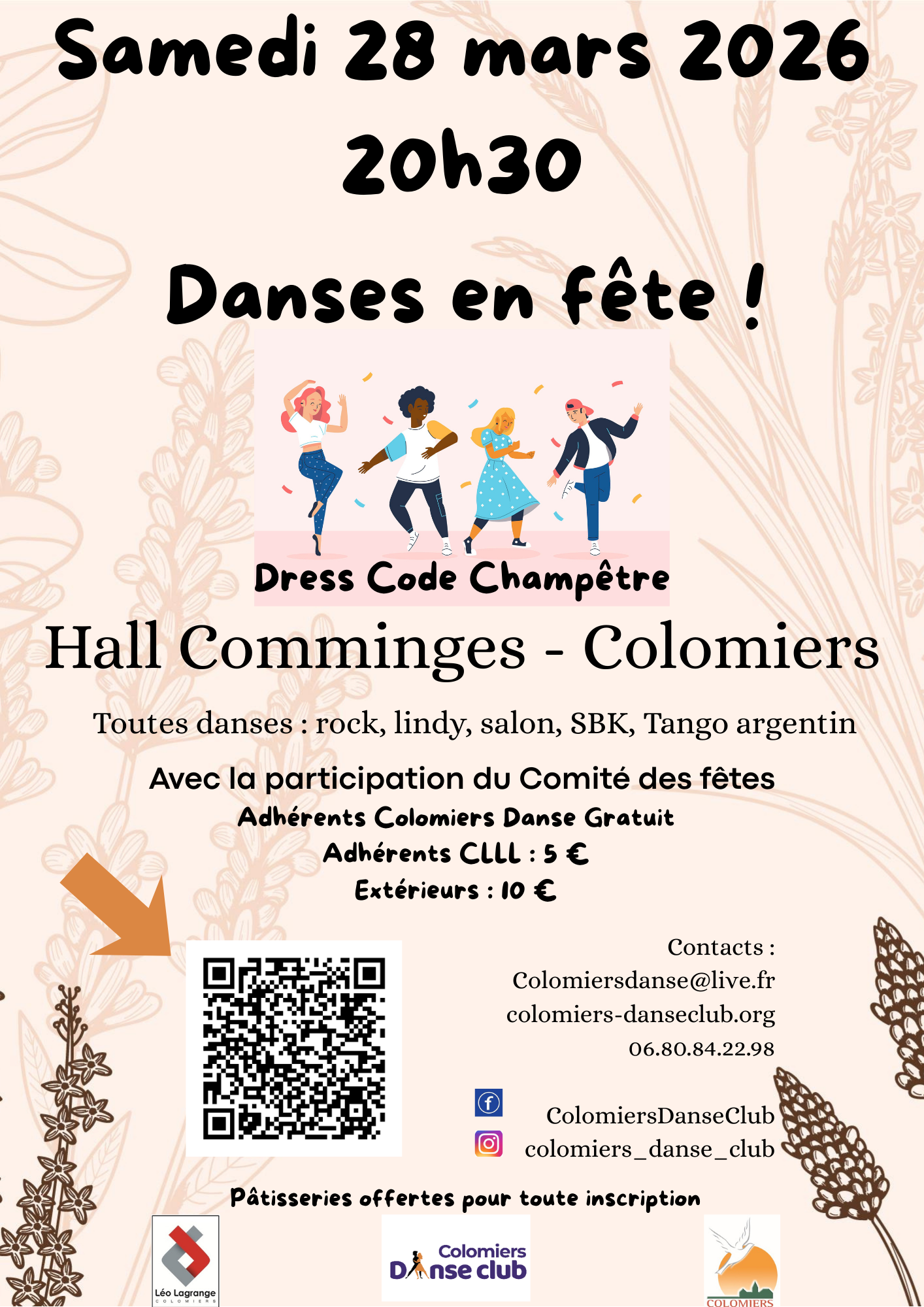 Marquez vos calendriers : Danses en Fêtes, organisées par la section Colomiers Danse Club du Club Loisirs Léo Lagrange, revient pour une soirée exceptionnelle le samedi 28 mars 2026 à 20 h 30 au Hall Comminges !